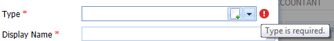 The Display Name is a Required field (). The user needs to enter a Description for the Document. Should the user not enter a Display Name and attempts to Save () the information the system will give an indication () that this is compulsory information.