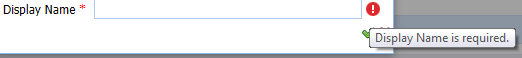 The Display Name is a Required field (). The user needs to enter a description for the Media Category. Should the user not enter a description for the Media Category and attempts to Save () the information the system will give an indication () that this is compulsory information.