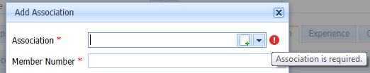 The Association is a Required field (). The user selects the Association by Left Clicking on the Drop Down List Box . When this is done a list of available Associations will be displayed.