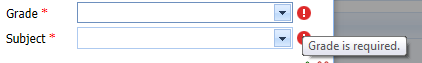 When all information has been entered the Grade and Subject is saved by Left Clicking on the Save Button (). Should the user want to Cancel the Add Action, Left Click on the Cancel Button ().